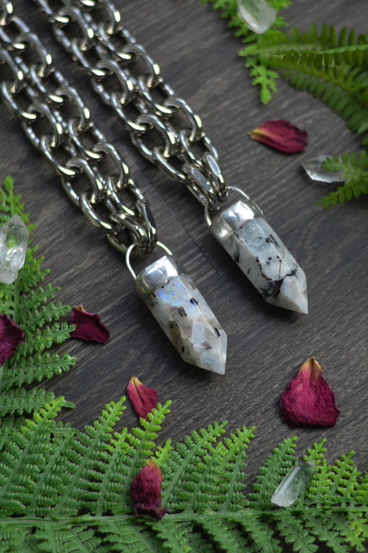 Rainbow Moonstone Chunky Chain Necklace